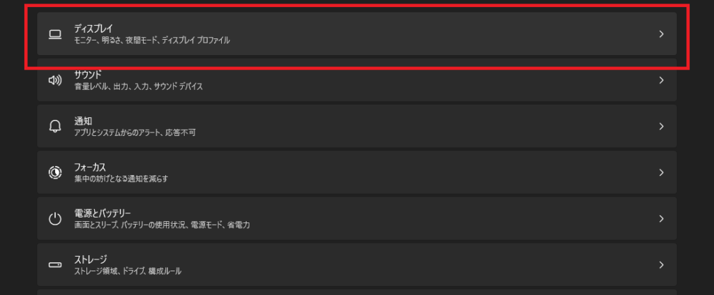 3.下記のような一覧が出てくるので、「ディスプレイ」をクリック