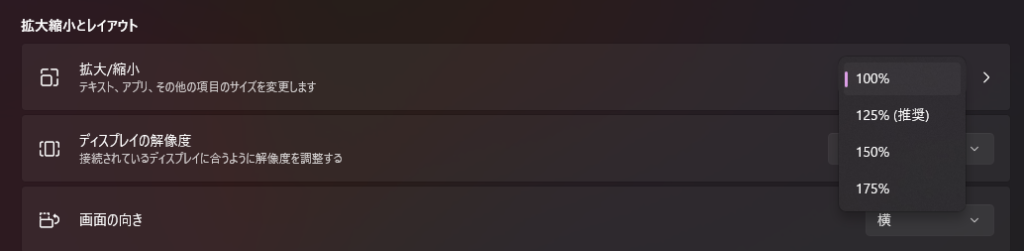 この設定を行うと、パソコンの画面内の表示が小さくなります。