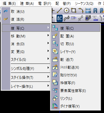 1.「編集」>「複写」>「複写」を選択します。