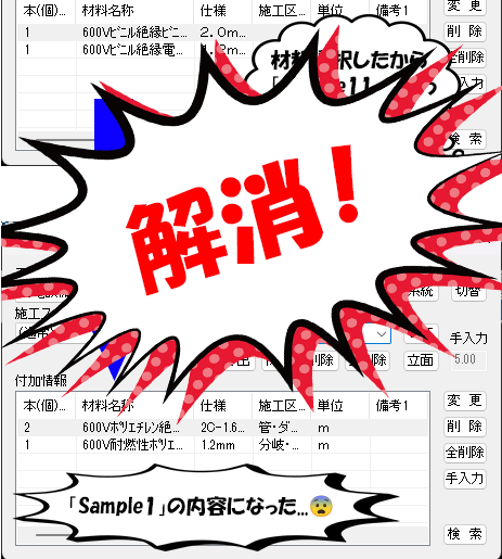 登録しておくと、拾い出しの際にすぐに登録した材料に変更することができます!