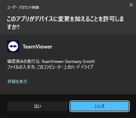 - 「このアプリがデバイスに変更を加えることを許可しますか?」という表示が出ましたら、「はい」をクリックしてください。