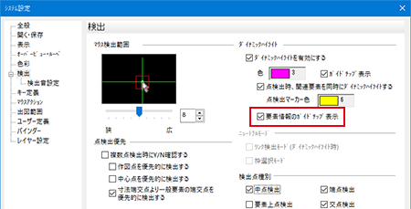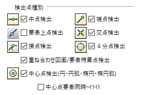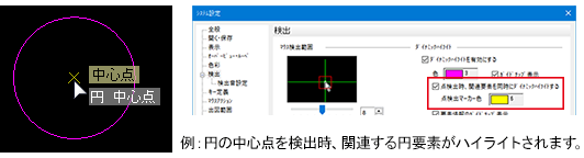 ※ [中心点要素同時ハイライト]は除きます。